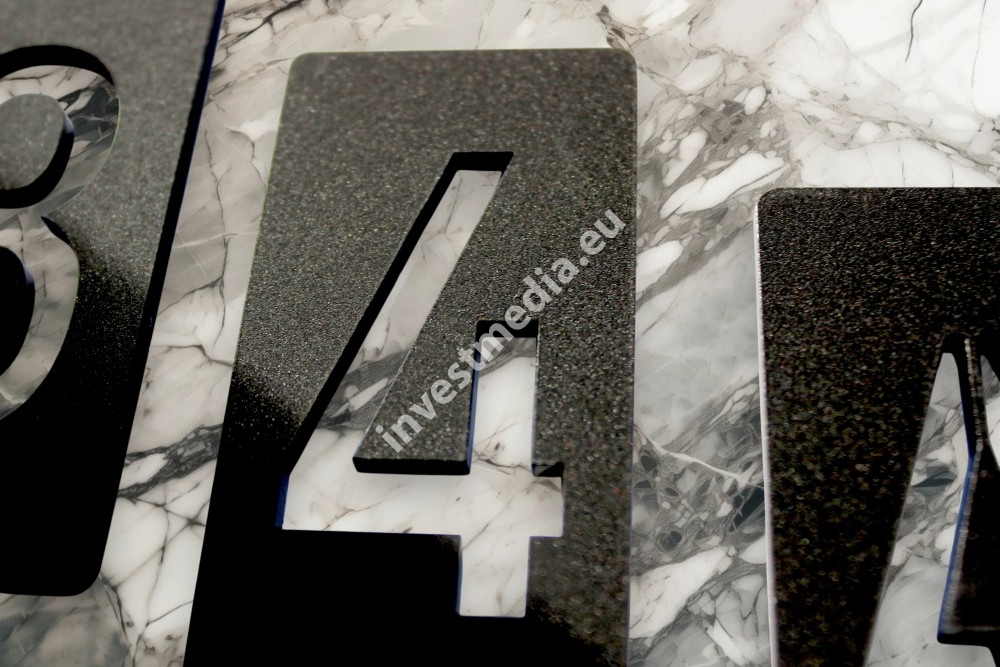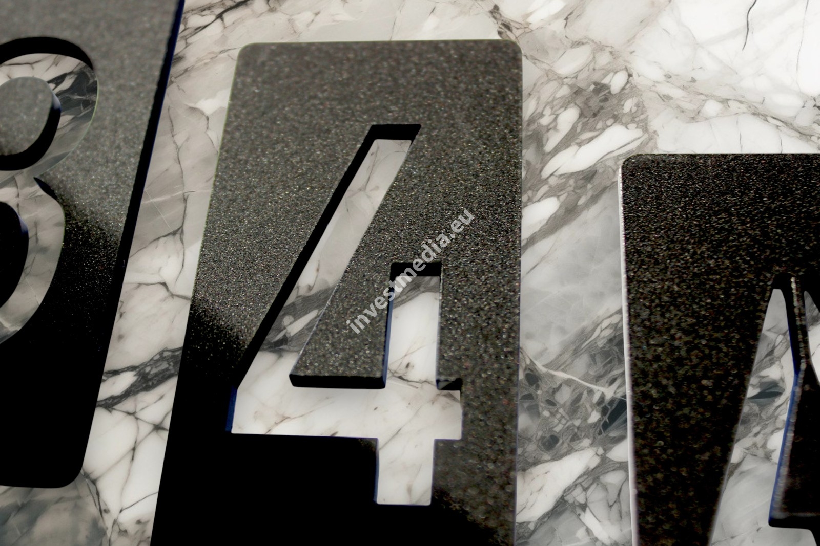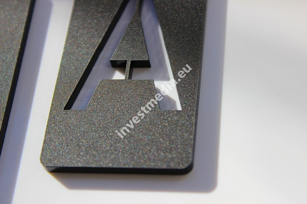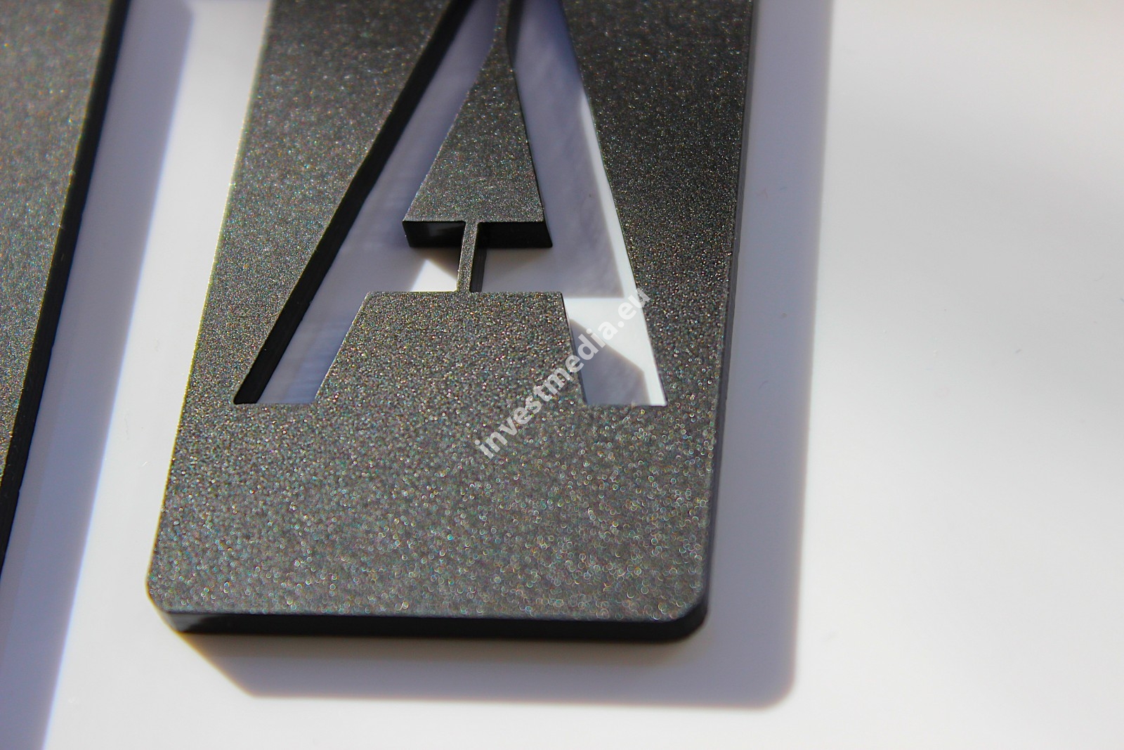 Material: 3 mm matte black acrylic glass, adhered with double-sided 3M tape.